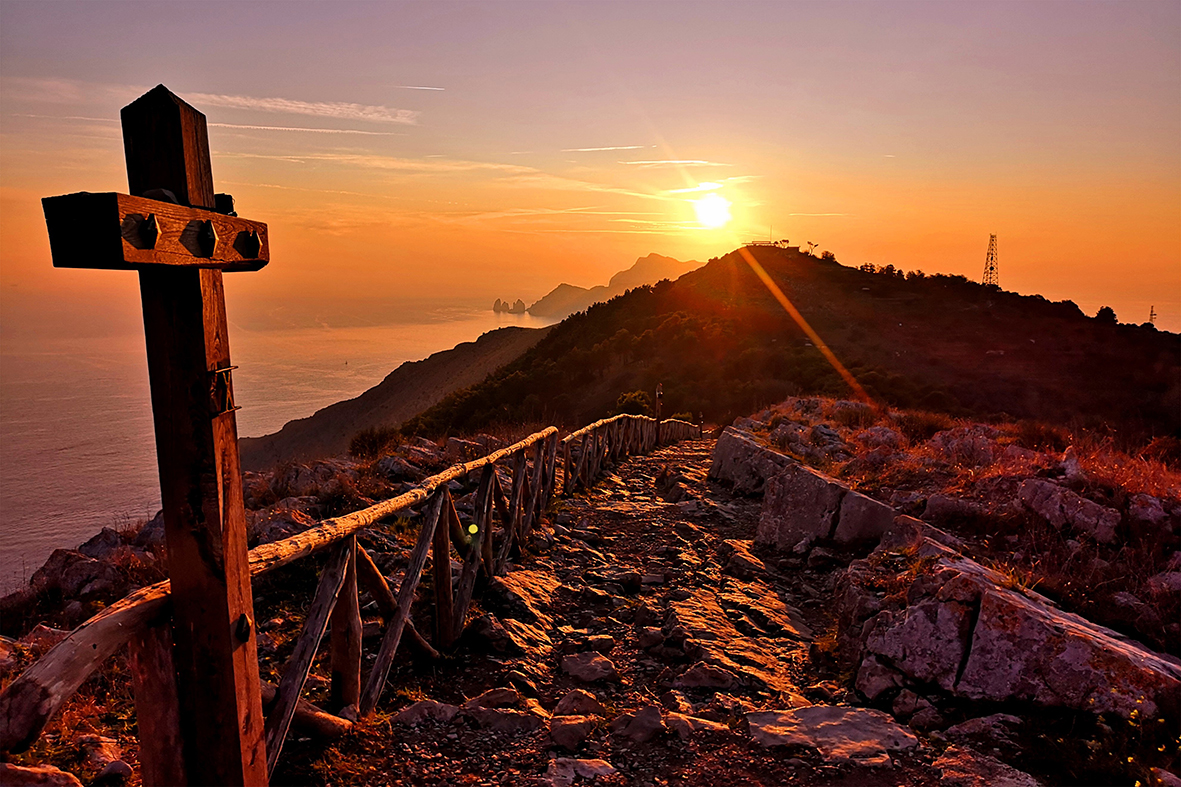 Un’immagine suggestiva, nei colori e nella scena, con la croce simbolo del Monte San Costanzo a Massa Lubrense è la foto di Roberta Schisano scelta per il mese di aprile.