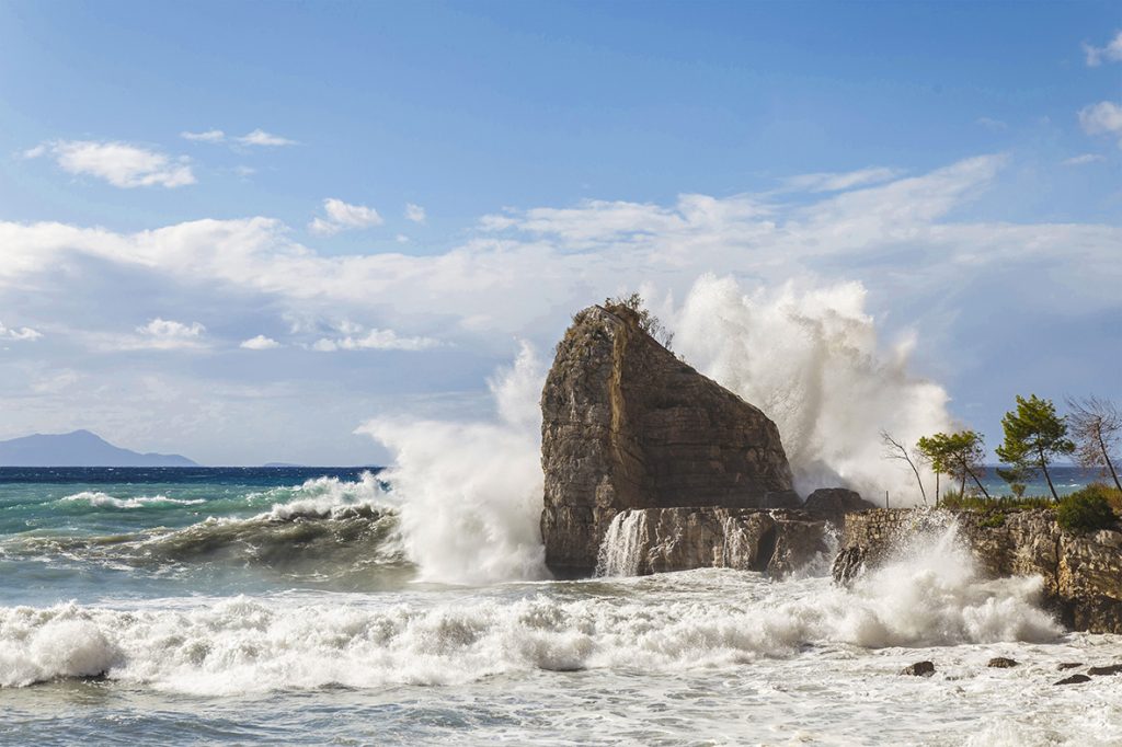Quando il mare è agitato, spesso si resta ad osservare ad ammirare la sua energia come quando sbatte con forza sullo Scoglio del Cavaliere a Meta. Momento immortalato nella foto di ottobre di Susy Serbandini