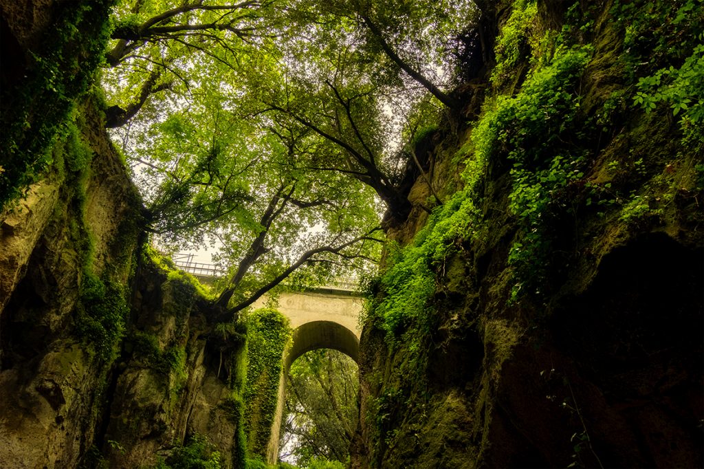 Antica via di comunicazione tra la montagna e i villaggi dei pescatori. Il suo particolare microclima favorisce la crescita di muschi e felci rarissime che, arrampicandosi con la ricca vegetazione lungo le pareti di tufo della gola, esplodono nelle infinite sfumature di Verde