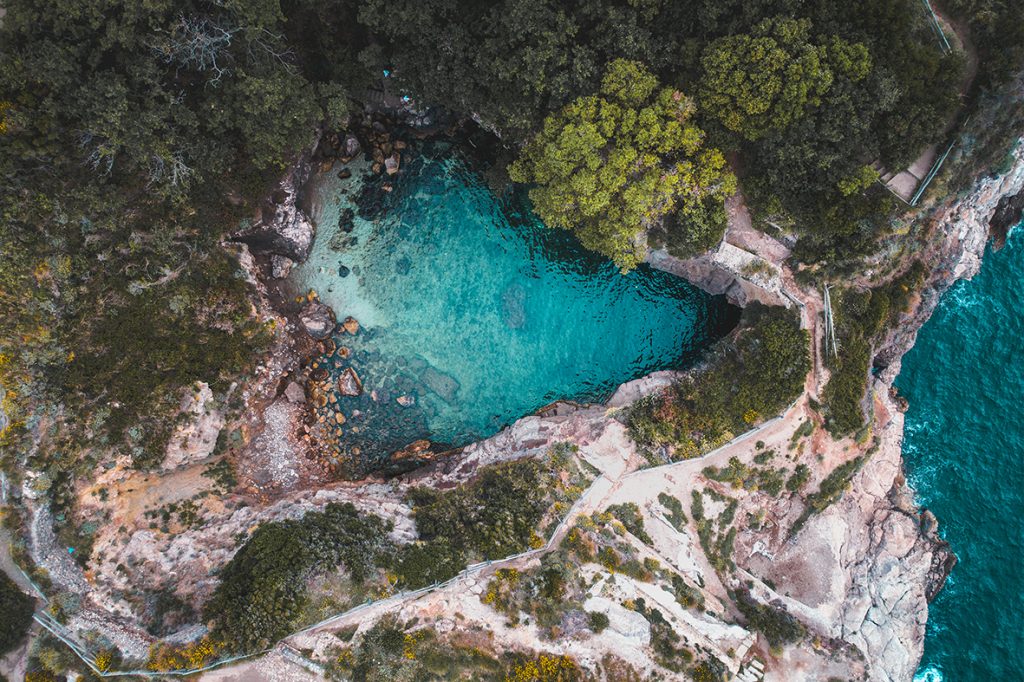 La piscina naturale della Punta del Capo di Sorrento, i Bagni della Regina Giovanna, è un luogo che racchiude storia, natura, mare e leggende che, visto dall’alto, sembra un cuore come in questa foto di Fabian Flores scelta per il mese di agosto.