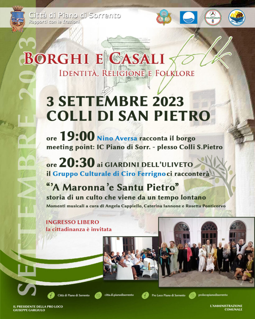 “Borghi e Casali Folk – Identità, religione e folklore” è la rassegna in cinque appuntamenti per valorizzare, rafforzare e – specialmente – far conoscere gli antichi borghi di Piano di Sorrento.