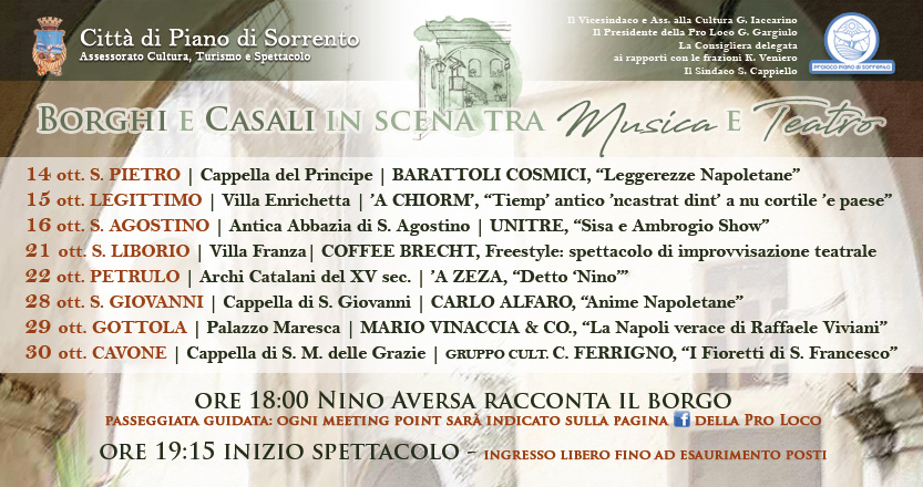 Al via la prima edizione di “Borghi e Casali in scena“, un itinerario intriso di storia, cultura e arte dove – in maniera del tutto inedita – si scoprono e riscoprono i luoghi più suggestivi di Piano di Sorrento