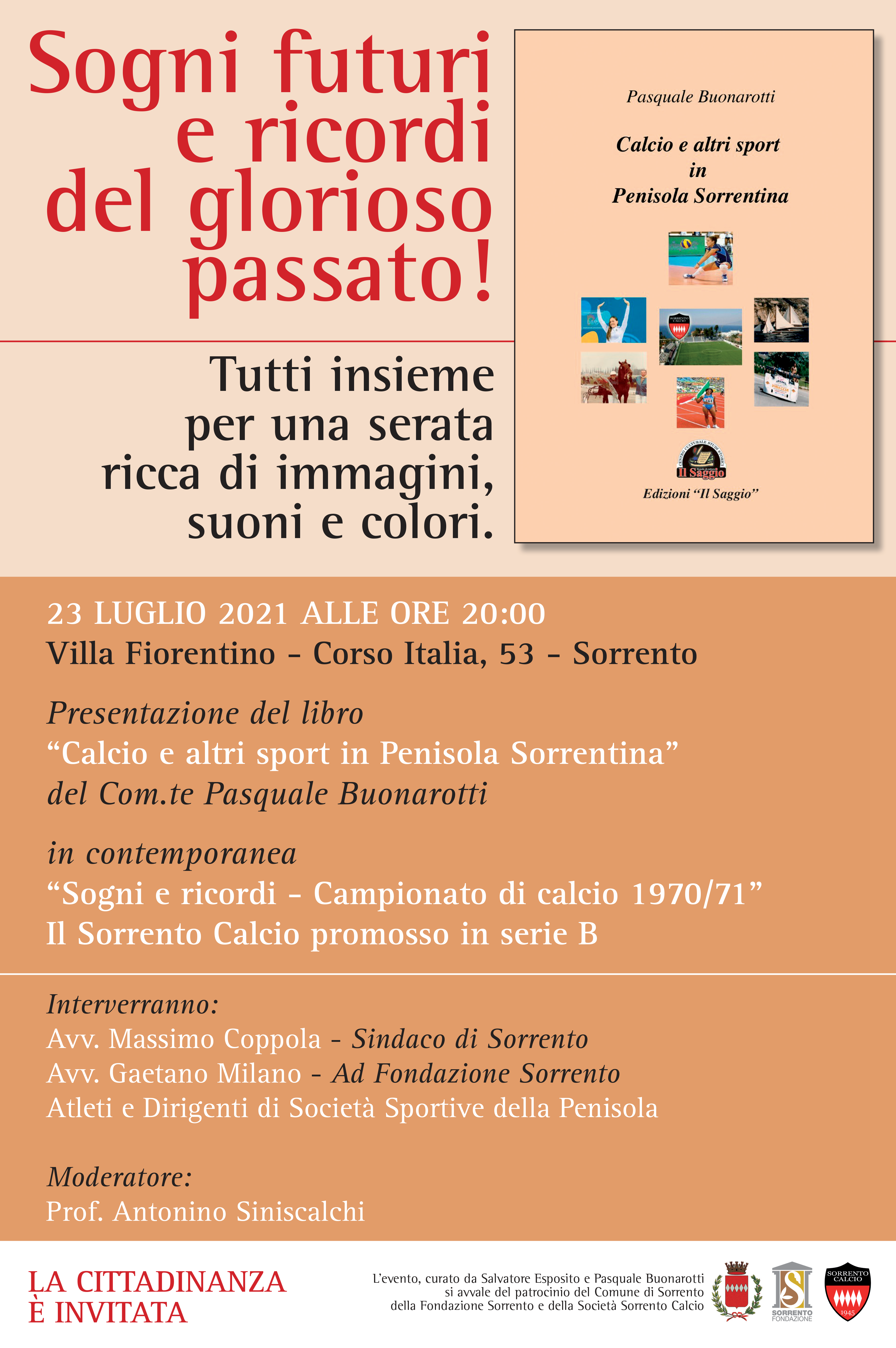 Nel programma del Summertime 2021, il 23 luglio c’è la presentazione del linro di Pasquale Buonarotti “Calcio e altri sport in Penisola Sorrentina!”